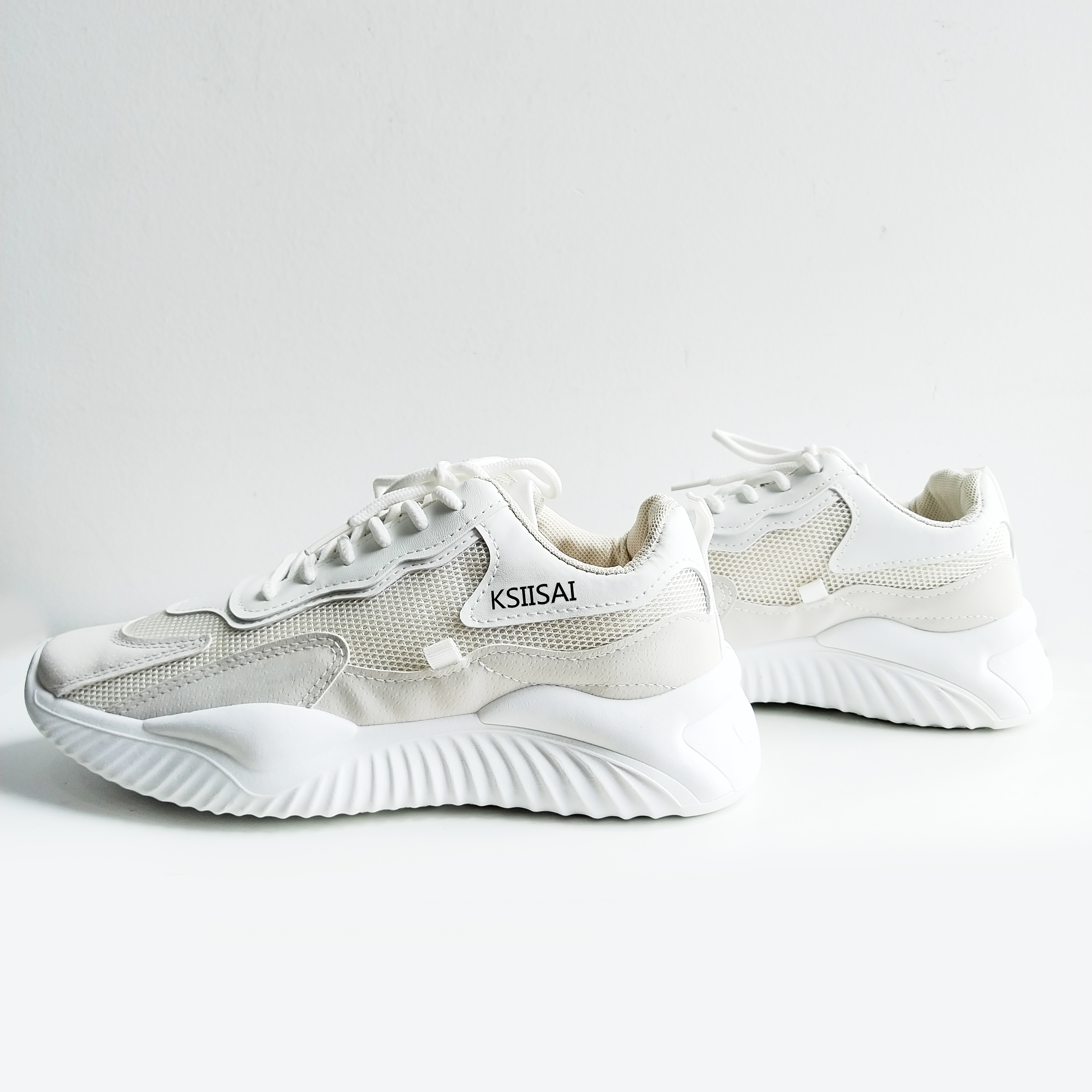 The sports shoes outsole is made from ultra-soft, lightweight MD material for shock absorption and cushioning, while the textured outsole provides extra traction and durability.