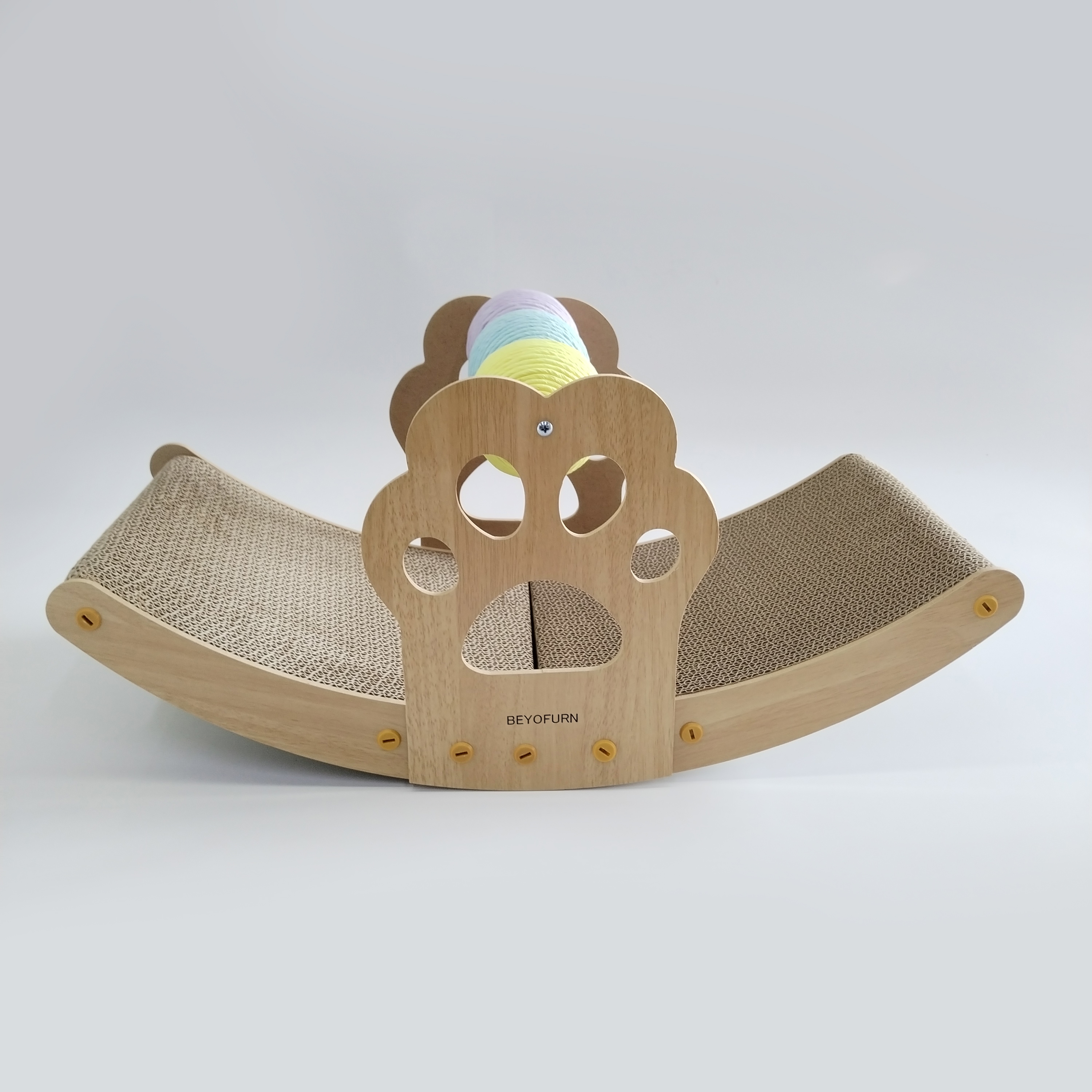 Unique Design -- This pet furniture has colorful twine scratching balls attached so cats can scratch anywhere. The three colorful hemp rope catching balls can also be rotated at will to attract the cat's attention, add fun to grinding claws, and make the cat no longer bored when playing.