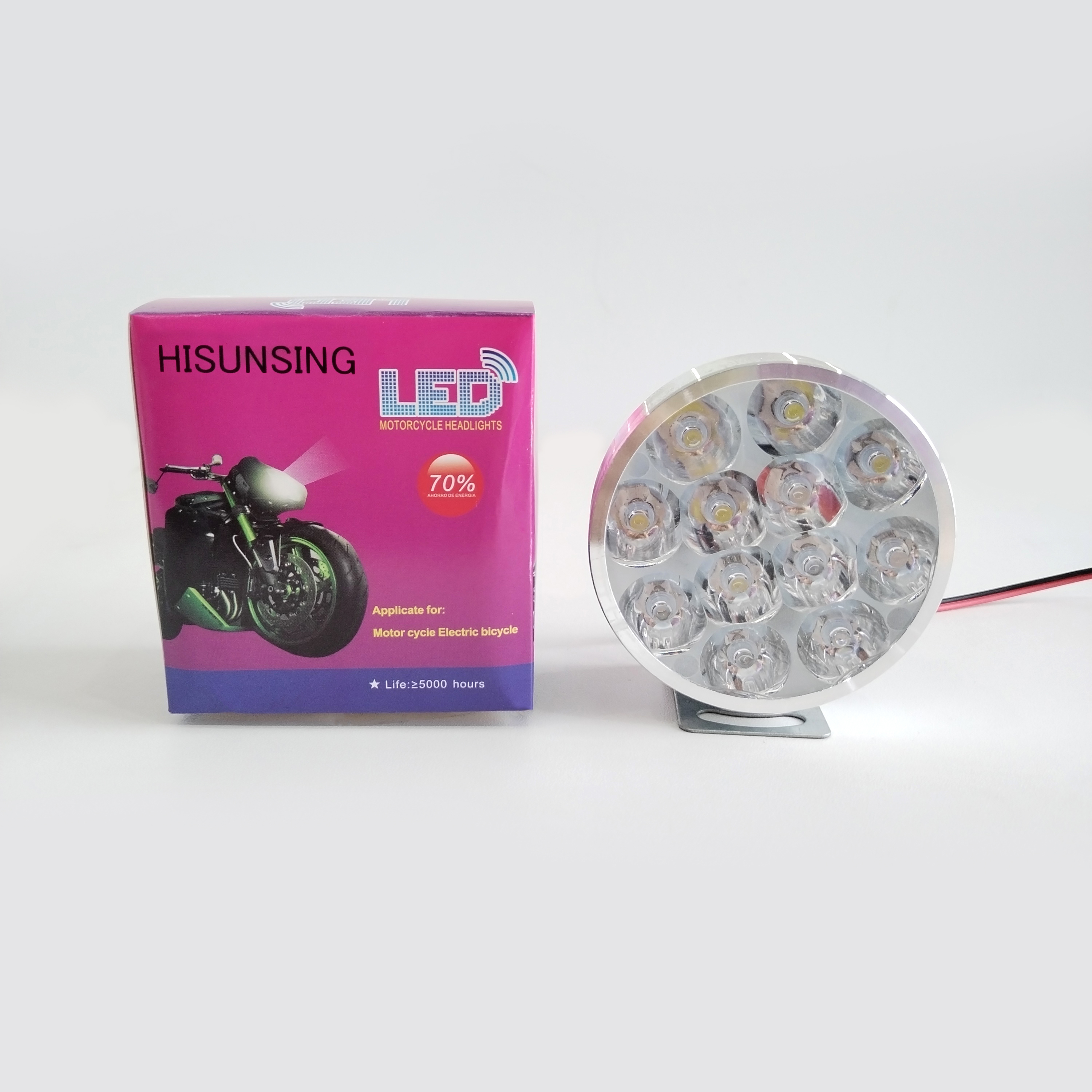 12 Led Light: This round motorcycle light uses advanced 12 LED chips to provide 12000lm, 6000k ultra-bright white light, which is far brighter than the 6-chip and 9-chip products of similar products. Allowing you to clearly see the left and right sides at all times.